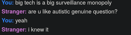 Stranger: are u like autistic genuine question?
